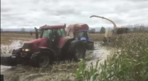 Kolla in det här inskickade materialet som kommer från Öland! Här står det vatten på majsfältet men skörden måste bärgas. Det är Wahlströms Mjölk & Maskin som hackar hos en av säsongens sista kunder.
