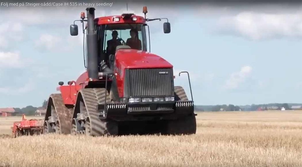 STEIGER-BANDARE! Det är höstsådd i Västergötland och Case IH 535 Quadtrac pressar med en HEVA. Det är stubbearbetning och sådd i ett moment och det är blött mycket blött. Kolla hur det stänker om gummibanden!