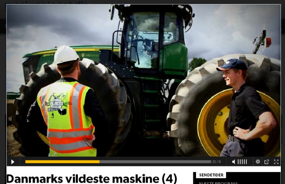 Det är ett riktigt kul program som körs i dansk teve i vår. Programledaren Rune Tolsgaard testar att köra olika maskiner i XXL-storlek. Bland dessa John Deere 9560R.