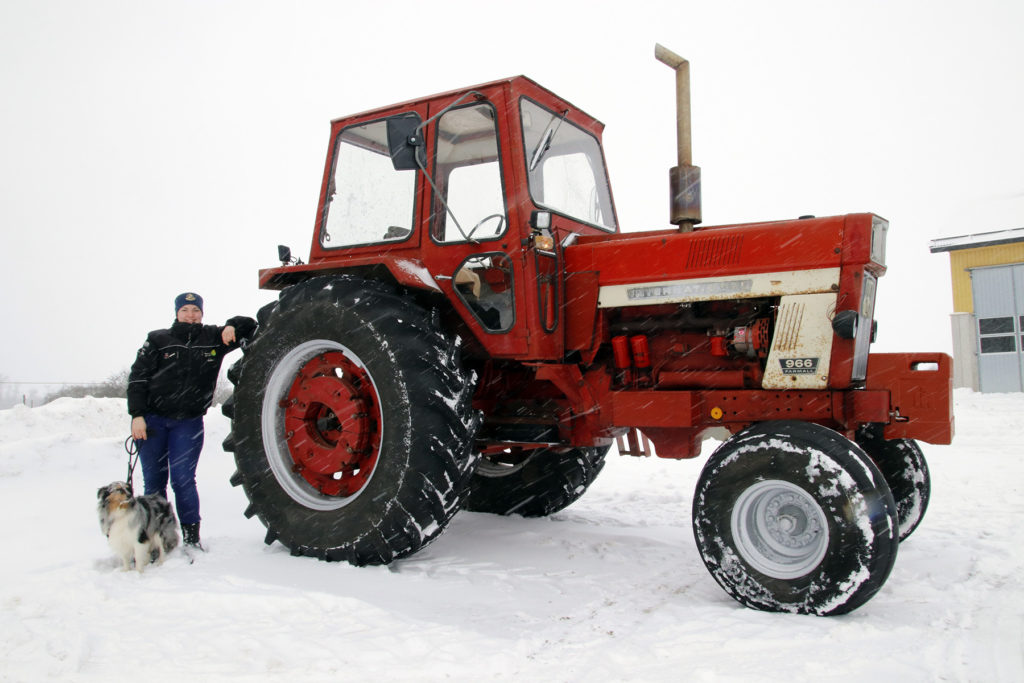 Cool. Nellie Johansson från Linderöd kör IH 966 från 1973. Hunden Hedda fick också hänga med.