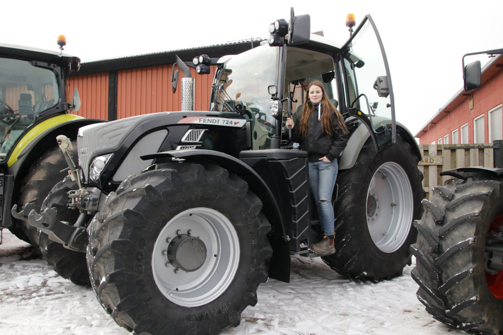 Izabelle Strandqvist med en Fendt 724 Vario.