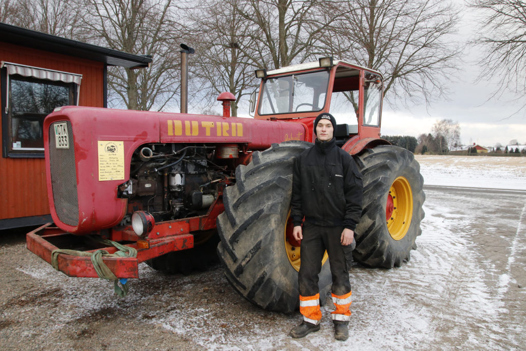 Rickard Johansson har gjort praktik på Simmelsberga Gård och fick låna med sig en Dutra till skolan.