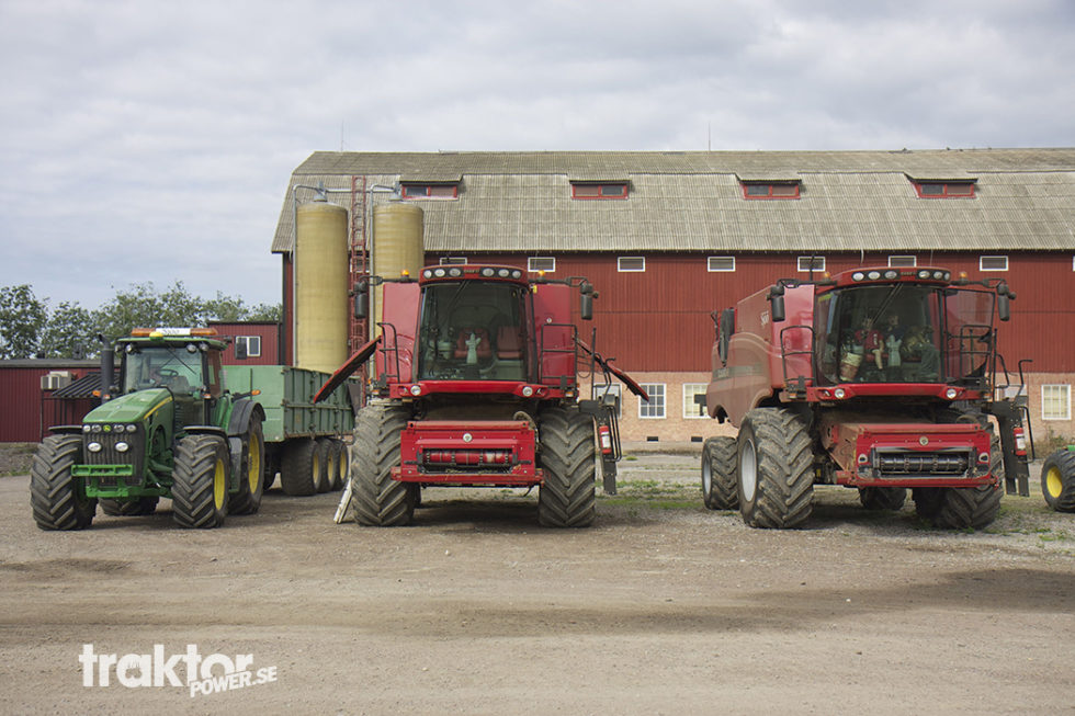 Spannmålsproffset Sjöö är redo. Snart ska de två stora skördetröskorna ut på rågfälten. Jonnen med följevagn är också tankad och redo. I Traktor Power nummer 2 får du hela maskinparken på den stora gården.