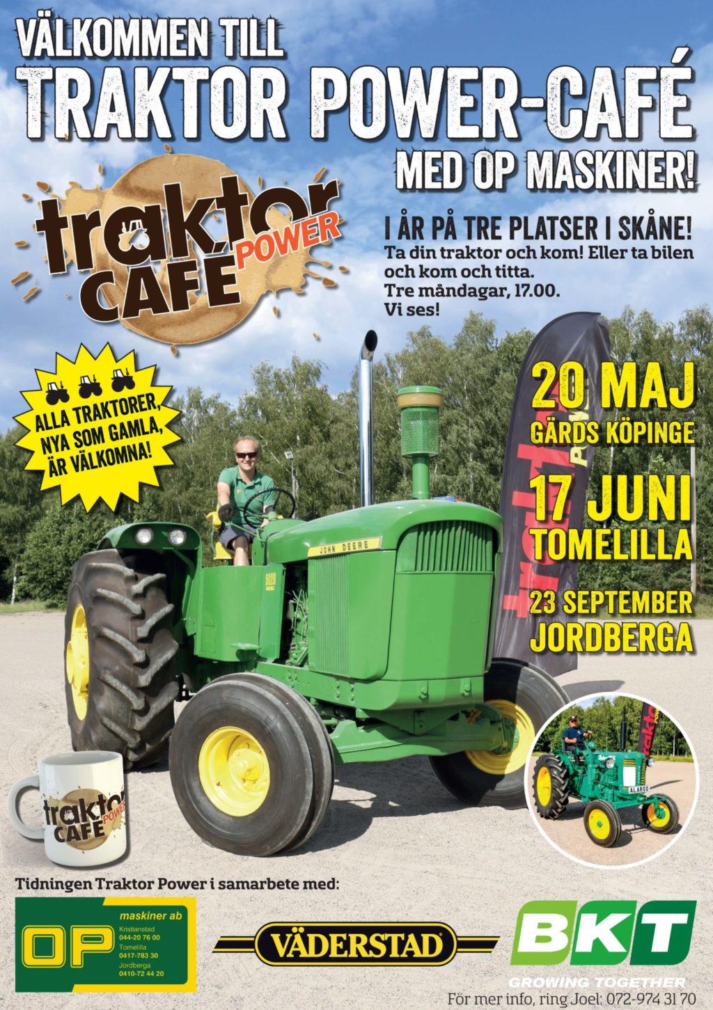 Nu drar cafésäsongen 2019 igång! Redan på måndag är det dags för första traktorcaféet. Nytt för i år är att caféerna hålls på tre platser i Skåne. Ta din traktor och kom! Alla märken och årsmodeller är välkomna. Det finns möjlighet att köpa kaffe eller korv med bröd. Har du inte möjlighet att ta traktorn kan du komma förbi och ta en kaffe och titta på alla traktorer. Hjärtligt välkomna!